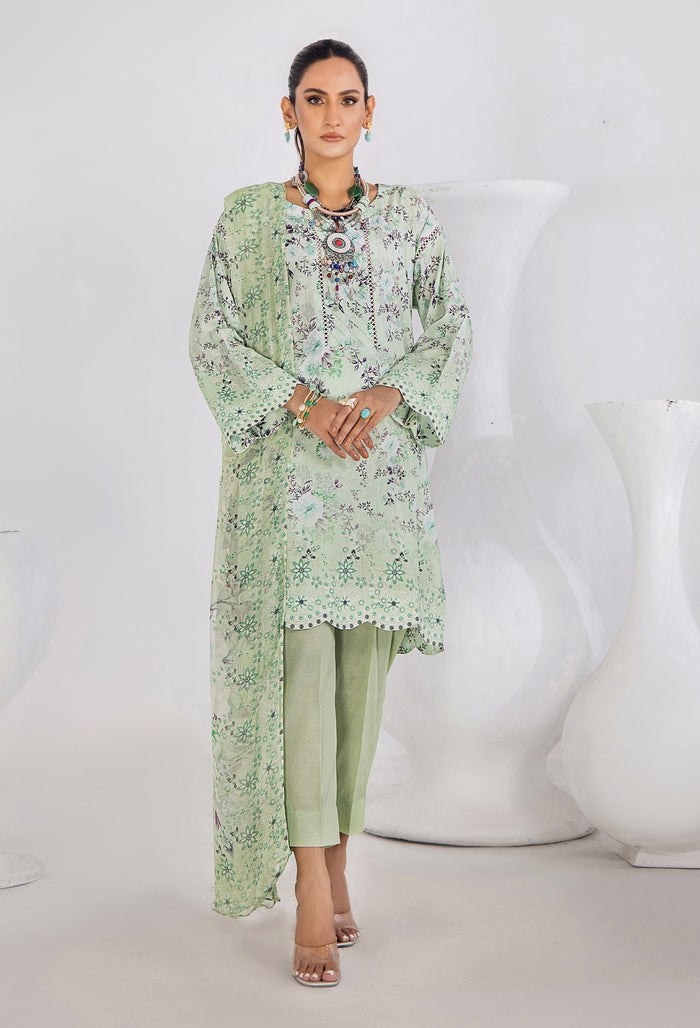 Digital Printed Lawn Shirt 1PC Dyed Cotton Trouser 2.5 Yard Digital Printed Chiffon Dupatta 2.5 Yard