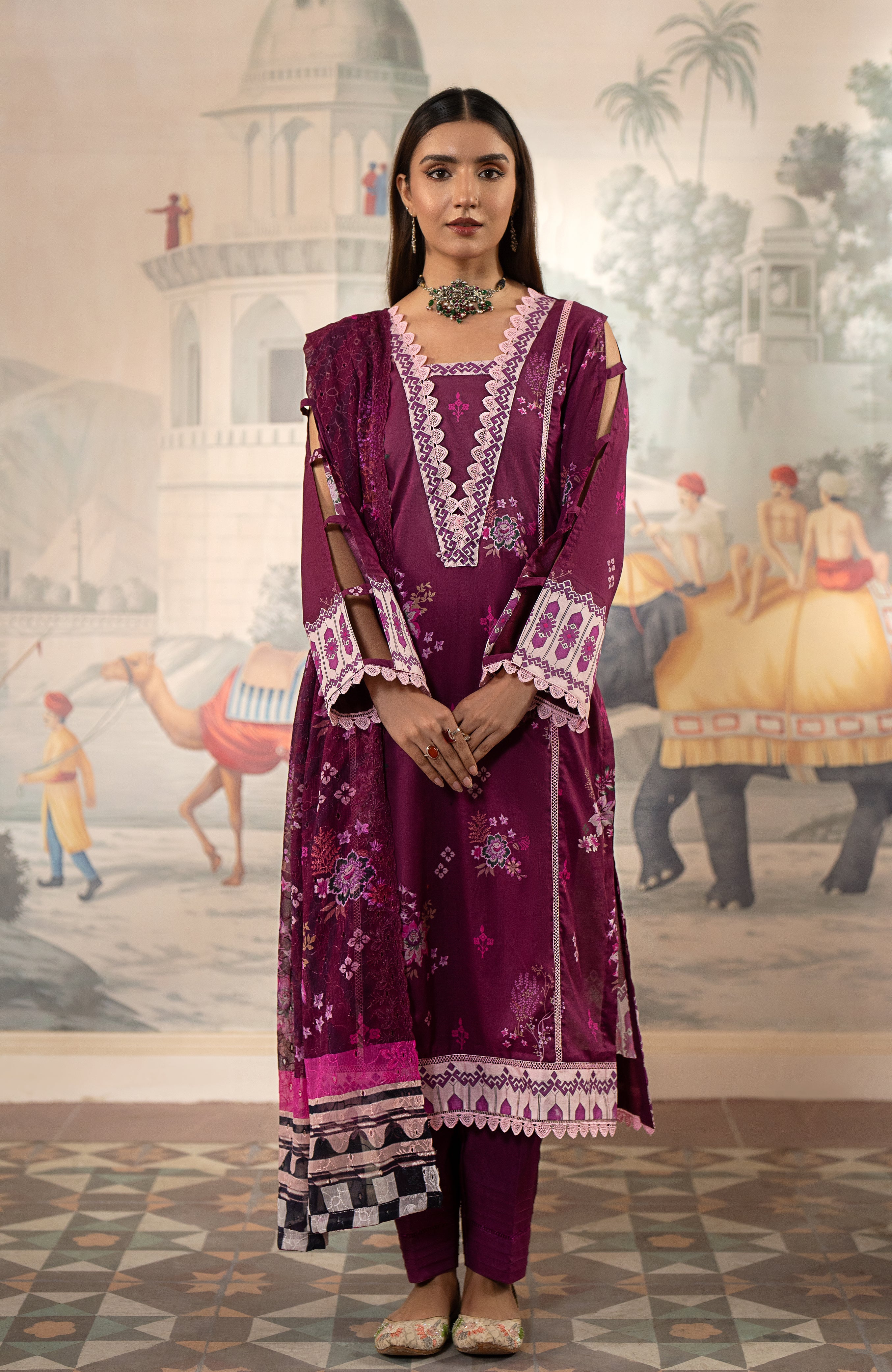 SHIRT: DIGITAL PRINTED  DUPATTA: FANCY CHIKANKARI CHIFFON DUPATTA TROUSER: DYED CAMBRIC