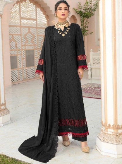 Premium Embroidered Dhanak Tila Stripe Shirt Dhanak Tila Stripe Embroidered Chantille Dupatta Comfort Plain Trouser