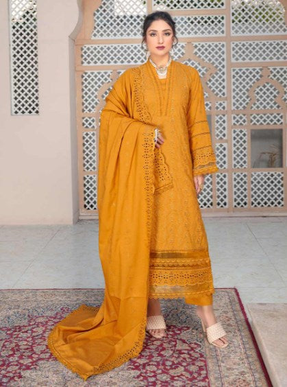 Premium Embroidered Dhanak Tila Stripe Shirt Dhanak Tila Stripe Embroidered Chantille Dupatta Comfort Plain Trouser