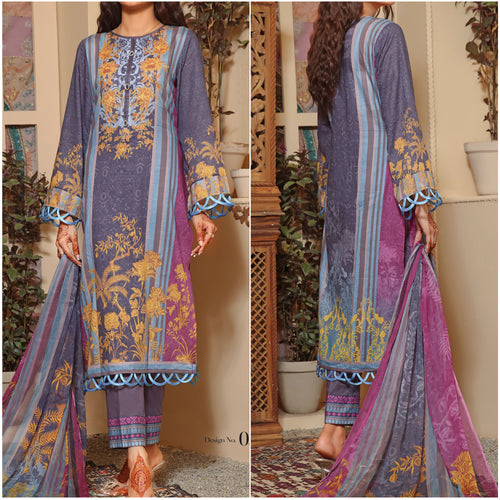 3 Meter Digital Printed Lawn Shirt2.5 Meter Printed Chiffon Dupatta2.5 Meter Plain Dyed Trouser