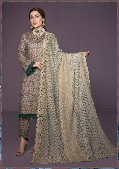 - Unstiched Digital Printed Lawn 5 Mtr Shirt & Trouser- Printed Premium BAMBER CHIFFON DUPPATA with 2...