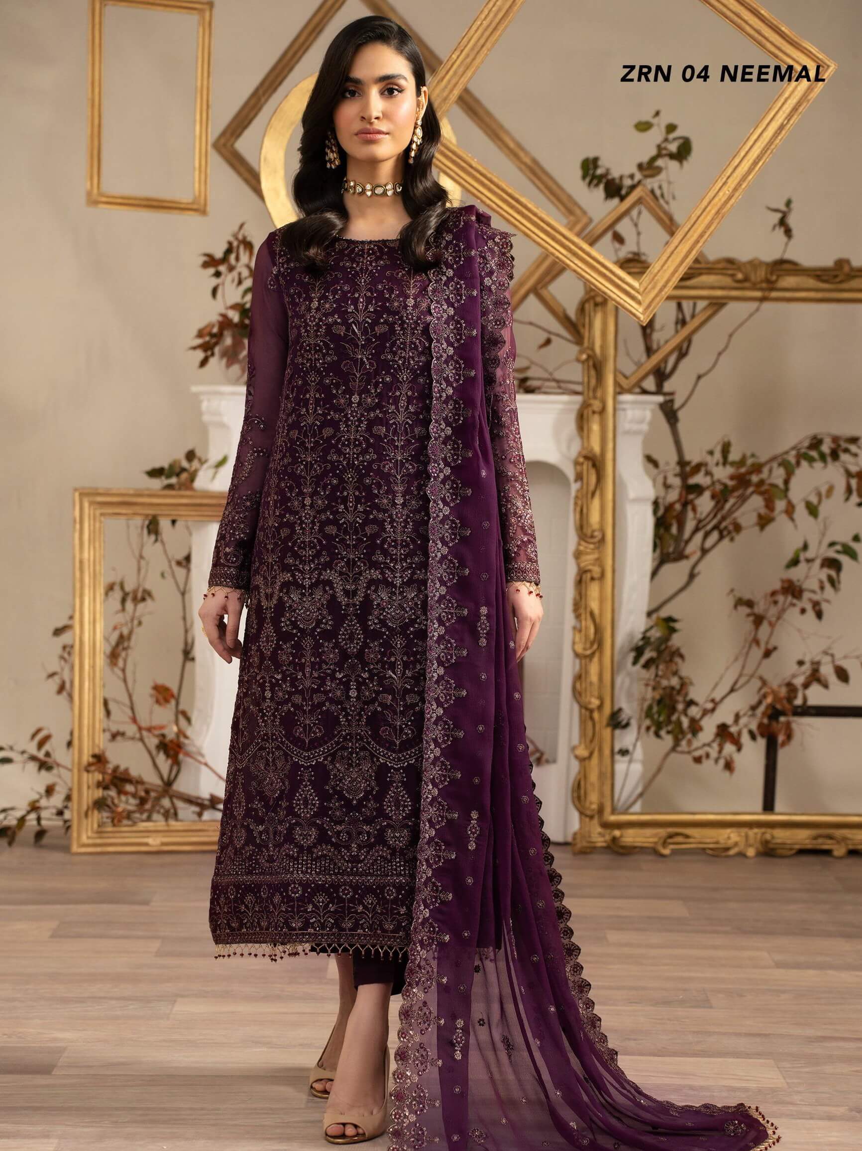Shirt Front: Sequins Embroidered ChiffonShirt Back: Sequins Embroidered ChiffonSleeves: Sequins Embroidered ChiffonDupatta: Sequins Embroidered ChiffonFront & Back Lace: Sequins Embroidered OrganzalSleeves Lace: Sequins...