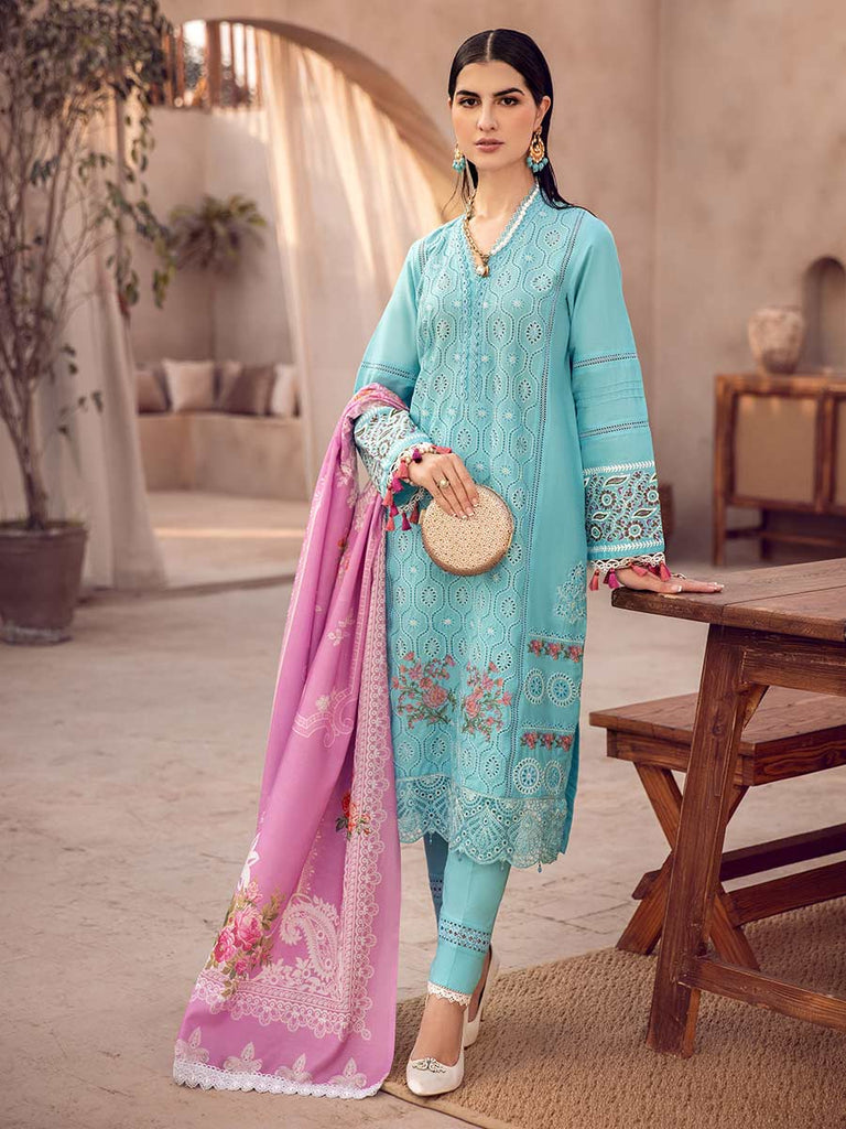 ChikanKari Embroidered Front Panel ChikanKari Embroidered Side Panels Block Printed Sleeves Dyes Lawn Back Dyed Cotton Trouser...