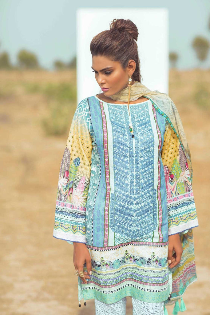 3 Piece Embroidered Lawn Suit Digital Printed Lawn Shirt with Embroidered Front 3.25 Yards Khaadi Net Dupatta...
