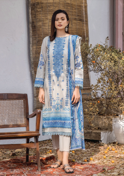 Printed Lawn shirt with Cross stich embroidery and printed Voil dupatta and plain cotton trousers