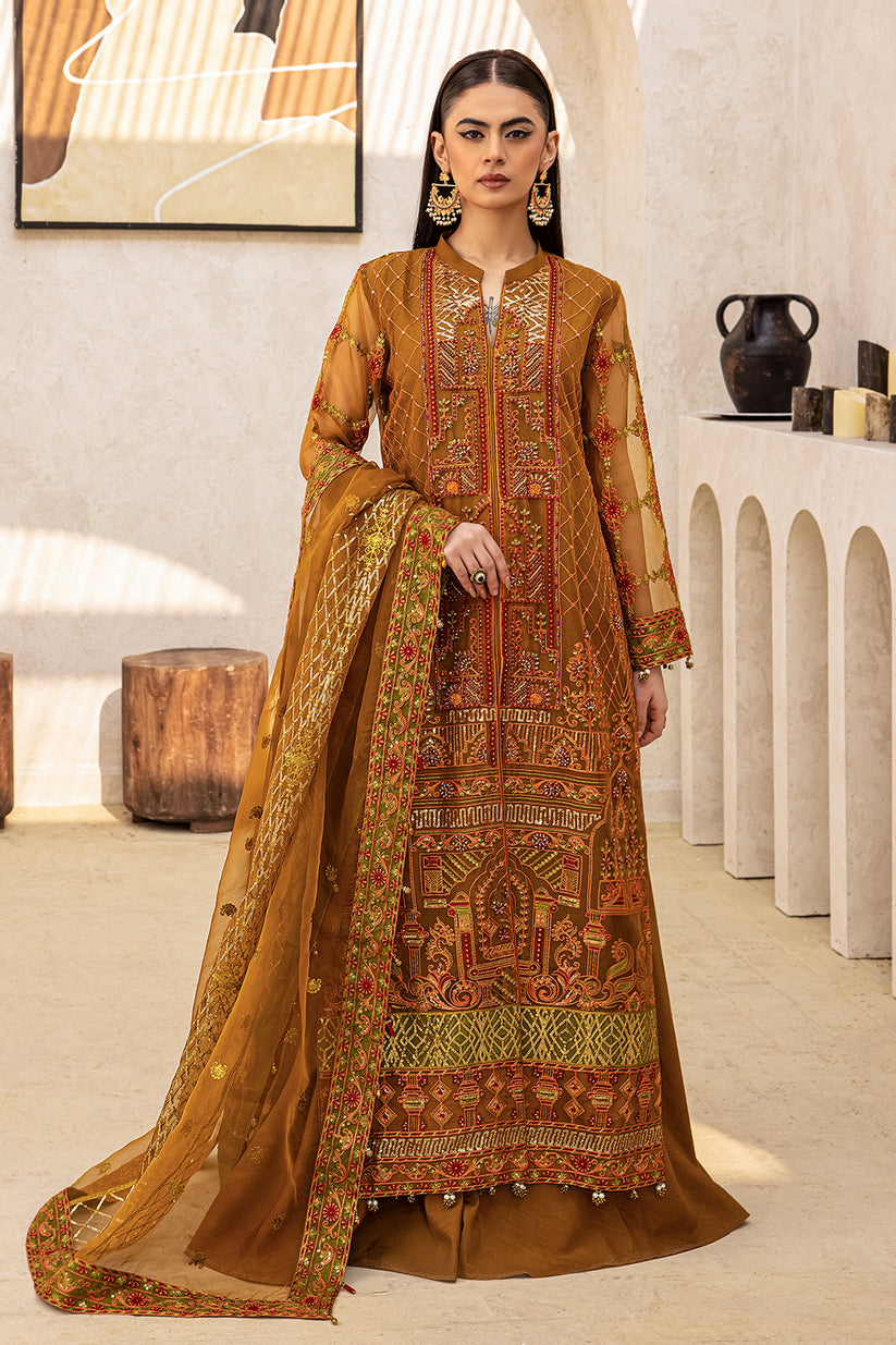 EMBROIDERED ORGENZA FRONT WITH H.M WORK 1 YDSEMBROIDERED ORGENZA BACK 1 YDSEMBROIDERED ORGENZA SLEEVES 0.67 YDSEMBROIDERED PISTA...