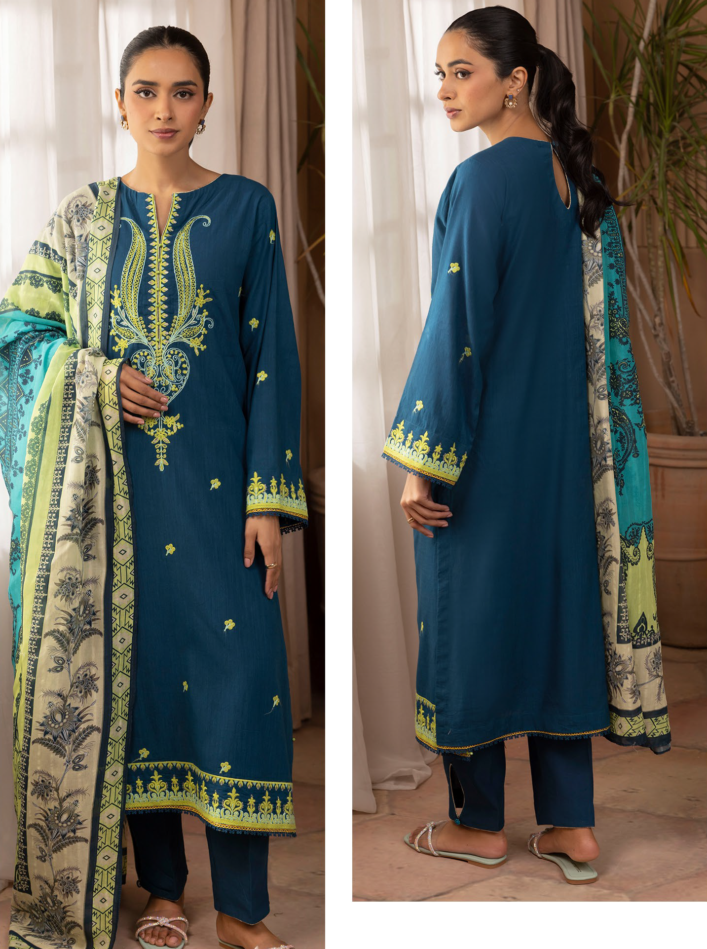 Dyed Embroidered Slub Lawn Shirt Digital Printed Doria Dupatta Dyed Cambric Trouser