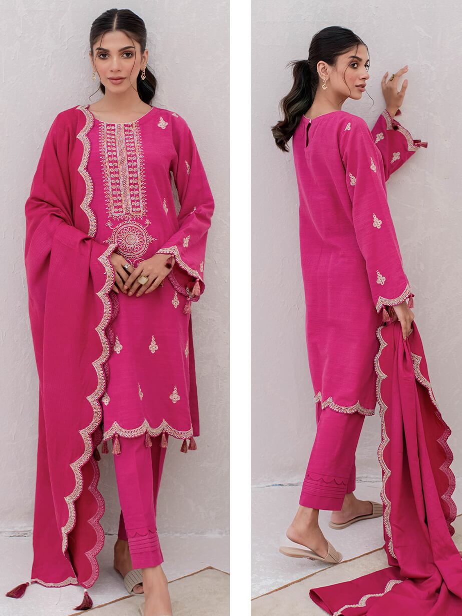 Shirt Dyed Embroidered Khaddar Shirt Dupatta Dyed Embroidered Shawl  Trouser Dyed Khaddar Trouser