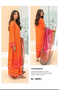 Dyed Embroidered Slub Shirt  Digital Printed Tennis Net Dupatta Dyed Cambric Trouser