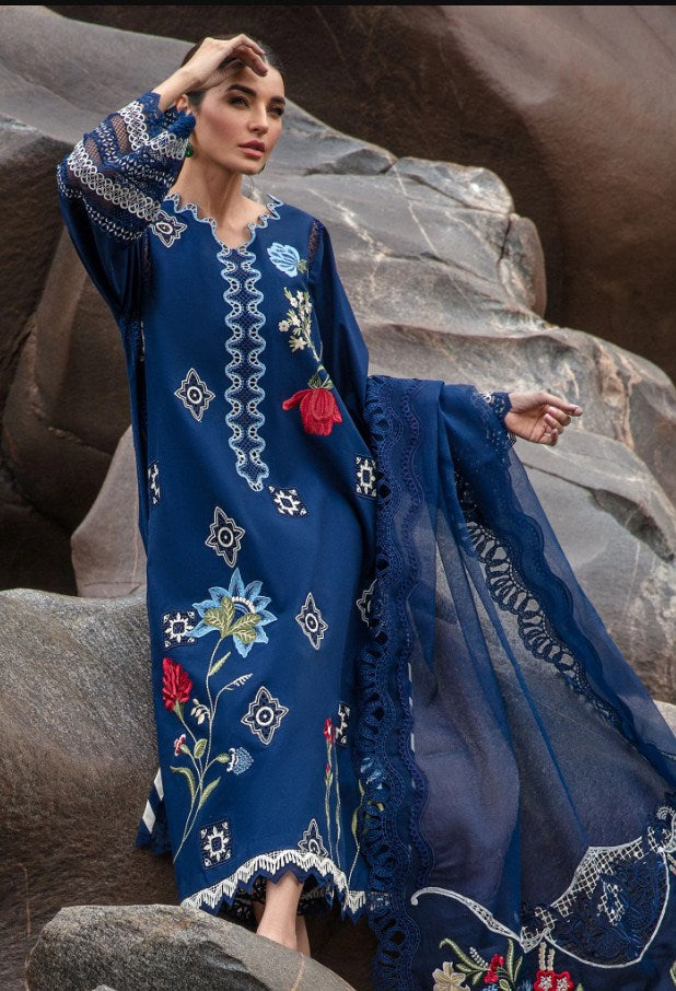 One embroidered panel for front with ghaara embroidery and hand appliqued laces One embroidered lace neckline 1.1...