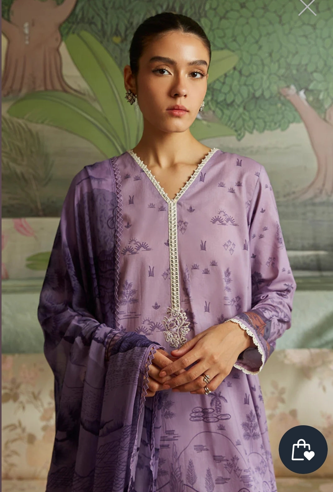 SHIRT -Digital printed cambric shirt -1 embroidered neckline -40 embroidered patti for hem TROUSER -Dyed cambric trouser...
