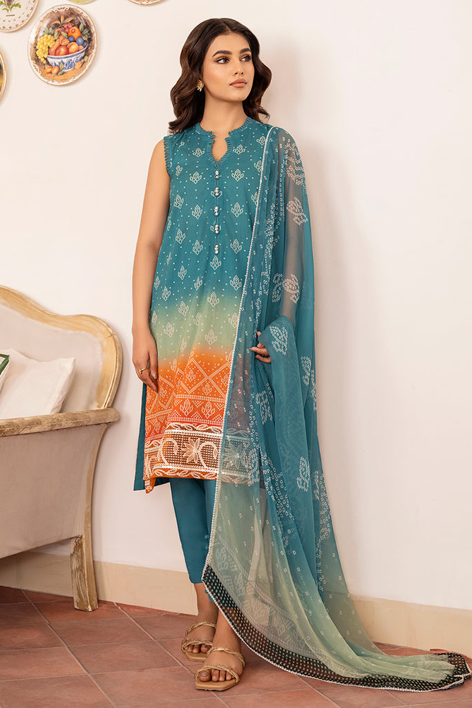 SHIRT DIGITAL PRINTED LAWN SHIRT 3 METER 1 EMBROIDERED NECKLINE 40" EMBROIDERED PATTI FOR SHIRT HEM TROUSER DYED...