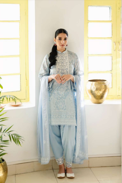 SHIRT DIGITAL PRINTED LAWN SHIRT 3 METER 1 EMBROIDERED NECKLINE TROUSER DYED CAMBRIC TROUSER 2.5 METER 40" EMBROIDERED PATTI...