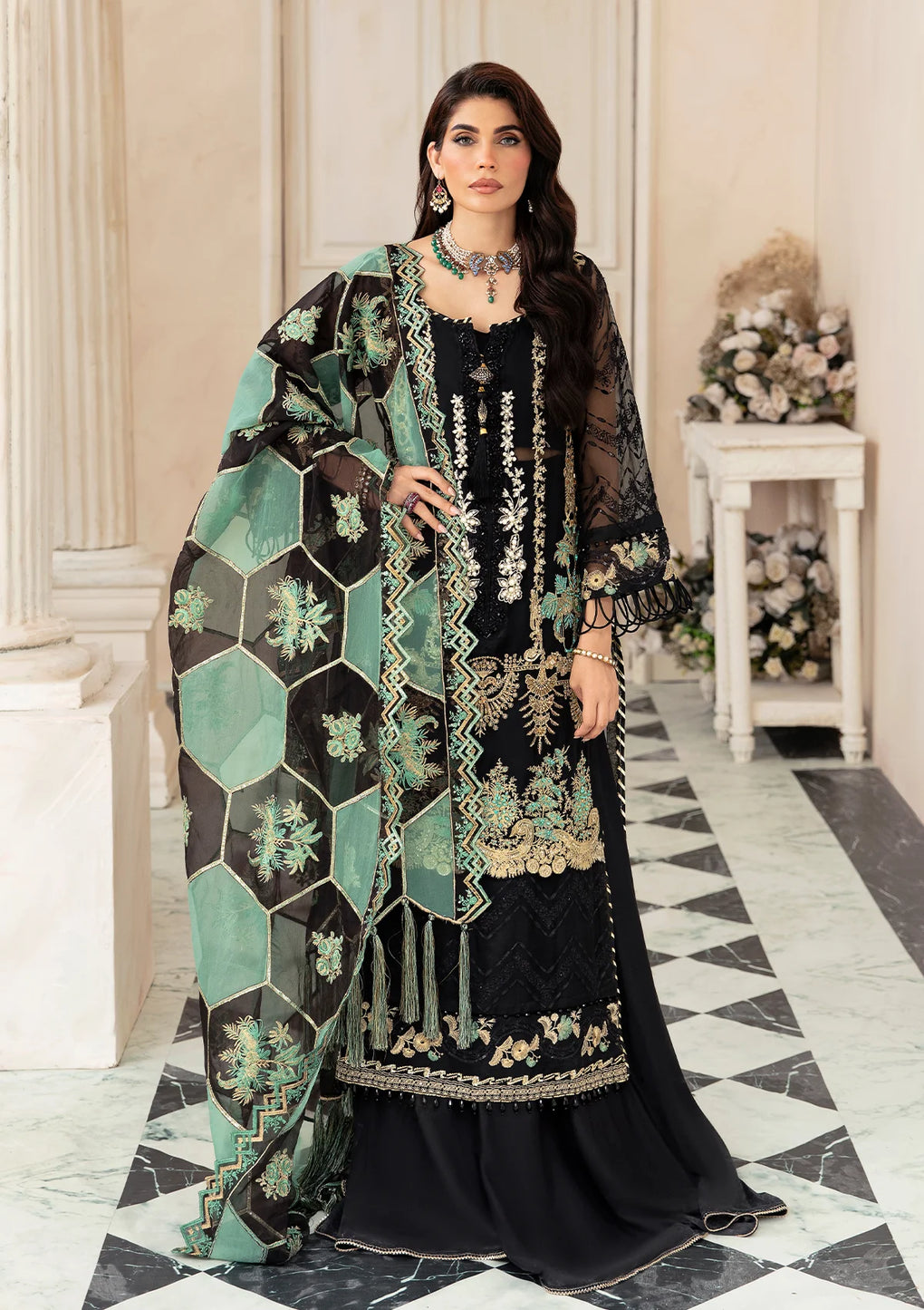 Embroidered Organza Hand Embellished Neckline