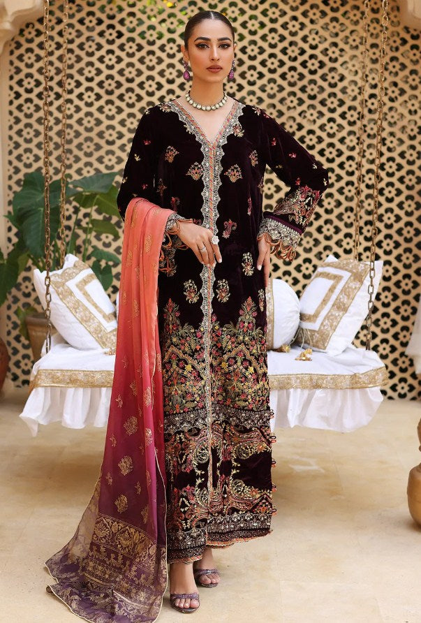 Embroidered Velvet ShirtDigital Printed SilkDyed Raw Silk Trouser