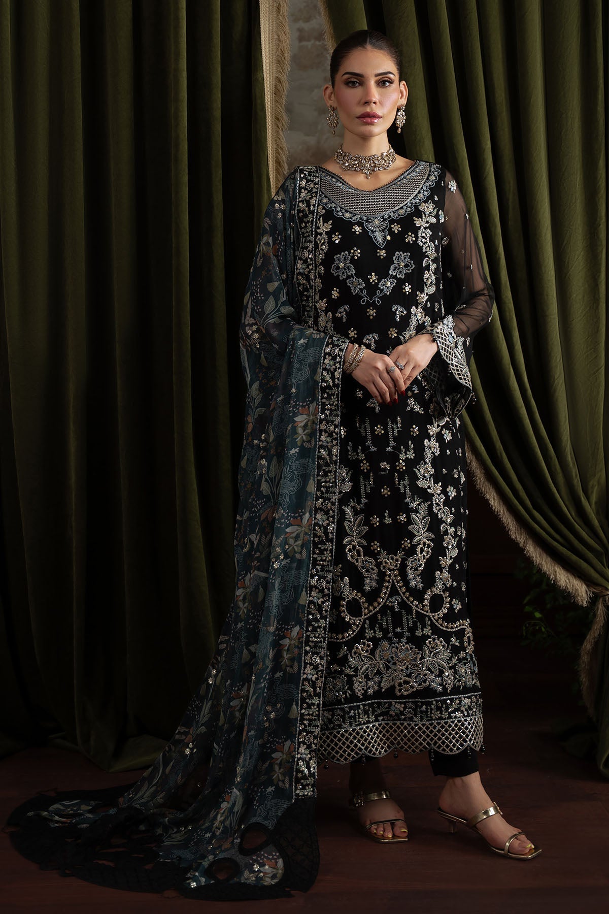 Embroidered And Hand Embellished Chiffon Front Dyed Chiffon Back Embroidered Organza Neck Patch Embroidered Organza Front &...