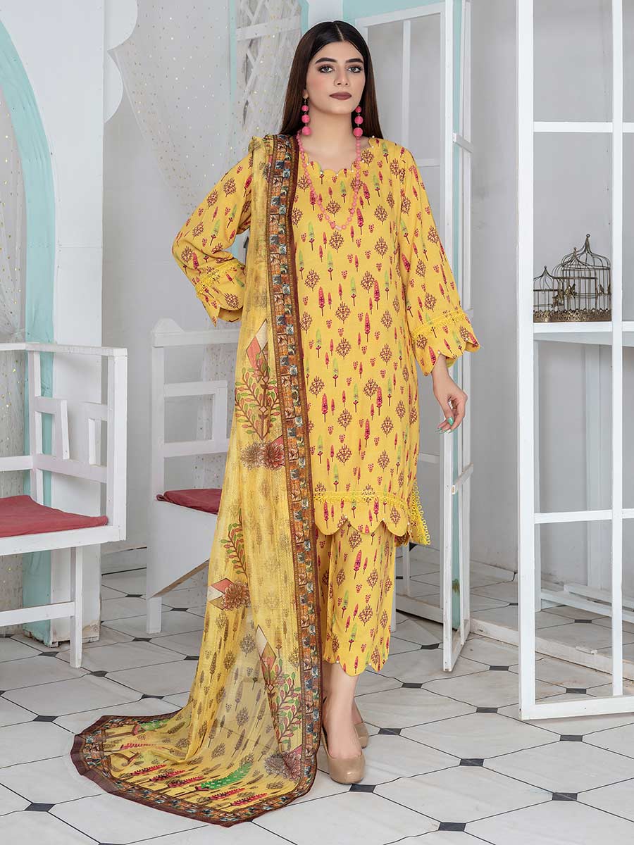 3 Pieces Unstitched Suit Digital Printed Slub Linen Shirt Digital Printed Self Jacquard Dupatta Digital Printed Slub...