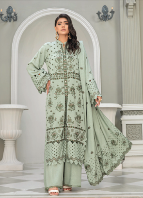 Premium karandi fully embroidered shirt with same plue embroidered karandi dupatta and comfort plain trouser