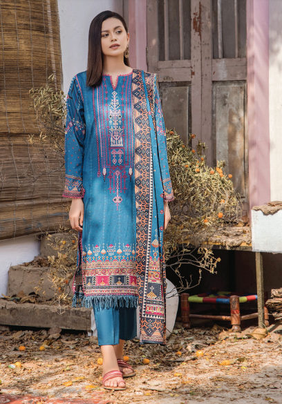 Printed Lawn shirt with Cross stich embroidery and printed Voil dupatta and plain cotton trousers