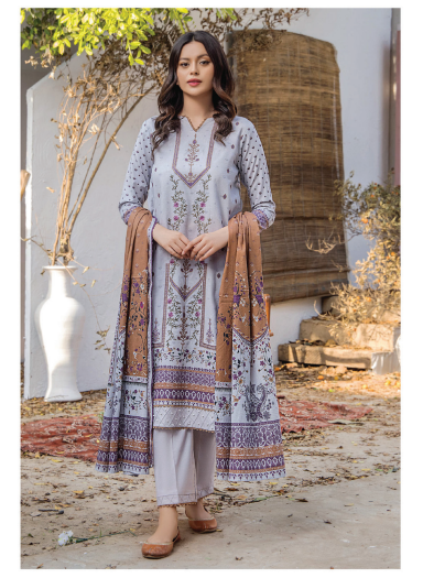 Printed Lawn shirt with Cross stich embroidery and printed Voil dupatta and plain cotton trousers