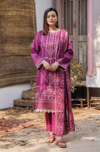 Printed Lawn shirt with Cross stich embroidery and printed Voil dupatta and plain cotton trousers