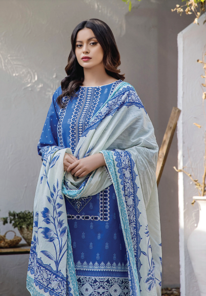 Printed Lawn shirt with Cross stich embroidery and printed Voil dupatta and plain cotton trousers