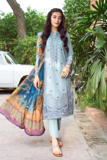 3 Piece Embroidered Lawn Suit Embroidered Neck Patch Embroidered Front Borders Digital Printed Silk Dupatta Digital Printed...