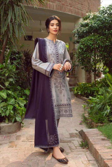 3 Piece Embroidered Lawn Suit Embroidered Neck Patch Embroidered Front Borders Digital Printed Silk Dupatta Digital Printed...