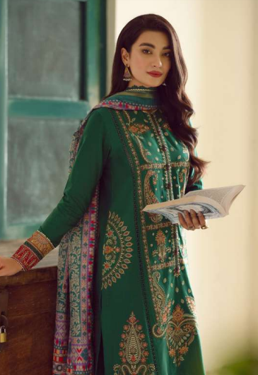 3 Piece Embroidered Lawn Suit Embroidered Neck Patch Embroidered Front Borders Digital Printed Silk Dupatta Digital Printed...