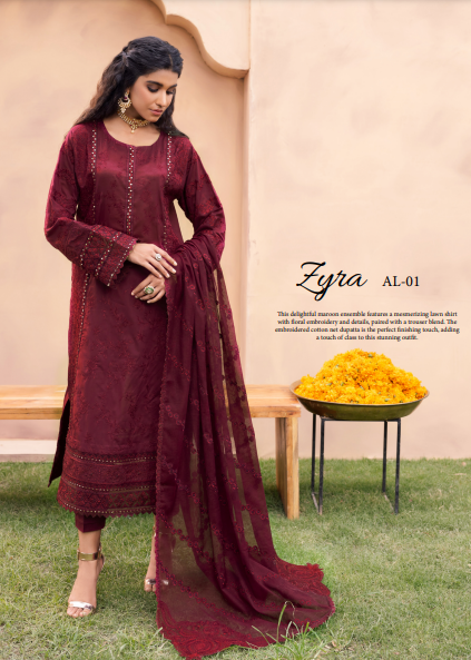 Shirt Front: Embroidered Lawn (1.05 M) Shirt Back: Dyed Lawn (1.25 M) Sleeves: Embroidered Lawn (0.65 M)...
