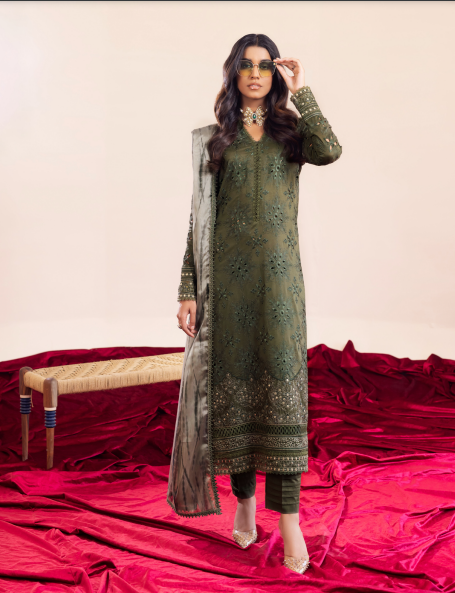 Shirt Front: Borer Embroidered Lawn (1.25 M) Shirt Back: Dyed Lawn (1.25 M) Front Lace: Embroidered Organza...