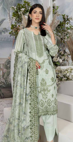 Embroidered digital lawn shirt 2.85 mtr Digital printed+embroidered chicken Kari lawn duppatta 2.5 mtr Plain cambric trouser...