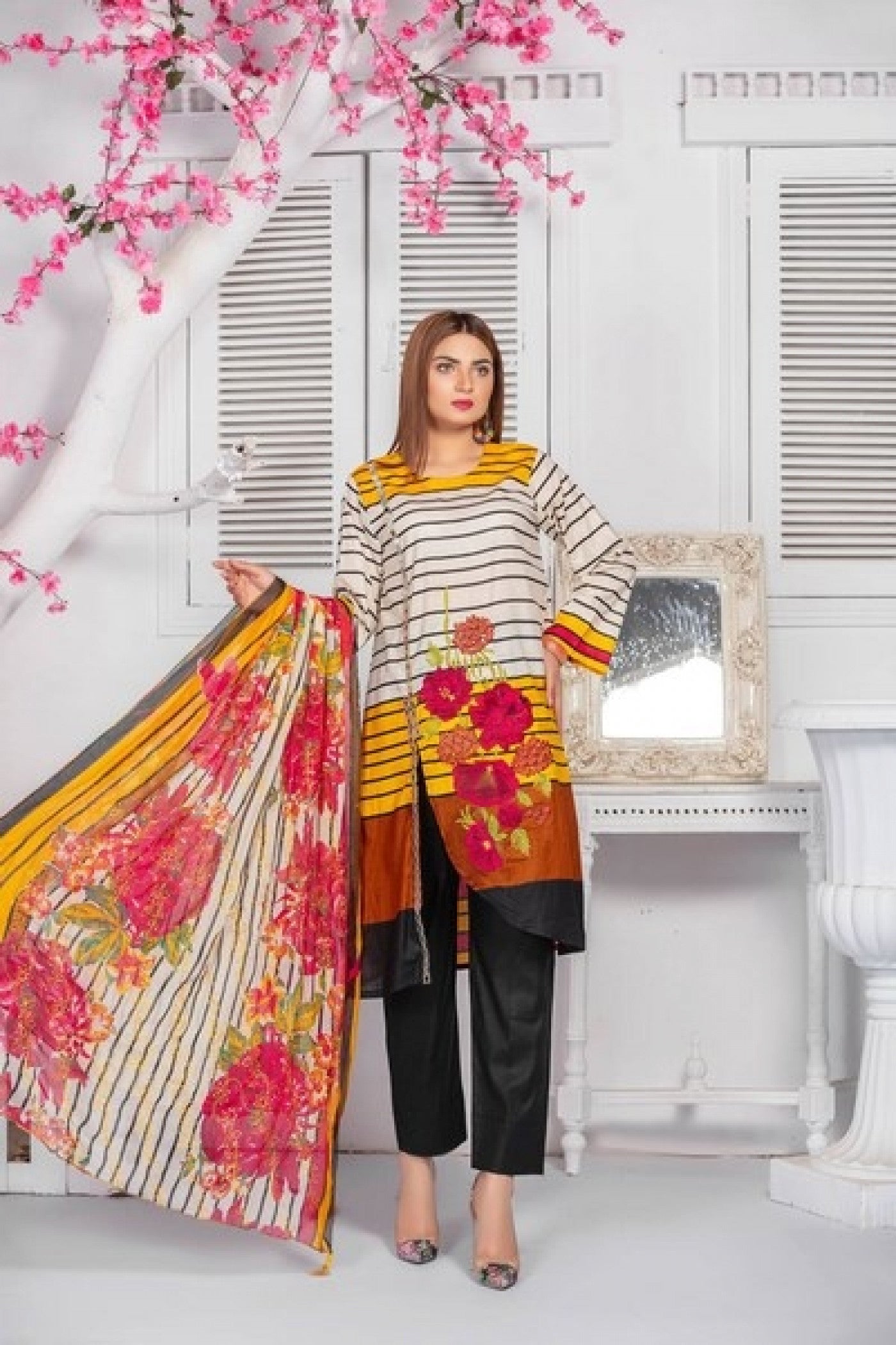 FRONT : EMBROIDERED LAWN 1.25 MTR BACK : PRINTED LAWN 1.25 MTR SLEEVES : PRINTED LAWN 0.5...
