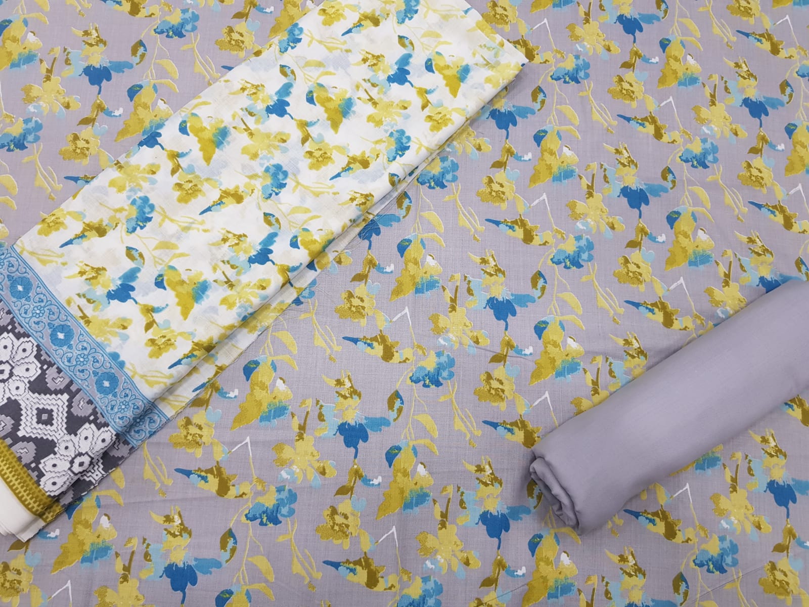Three Piece Unstitched Suits 3 Meter Printed Shirt 2.25 Meter Printed Duppta 2.25 Meter Plain Trouser