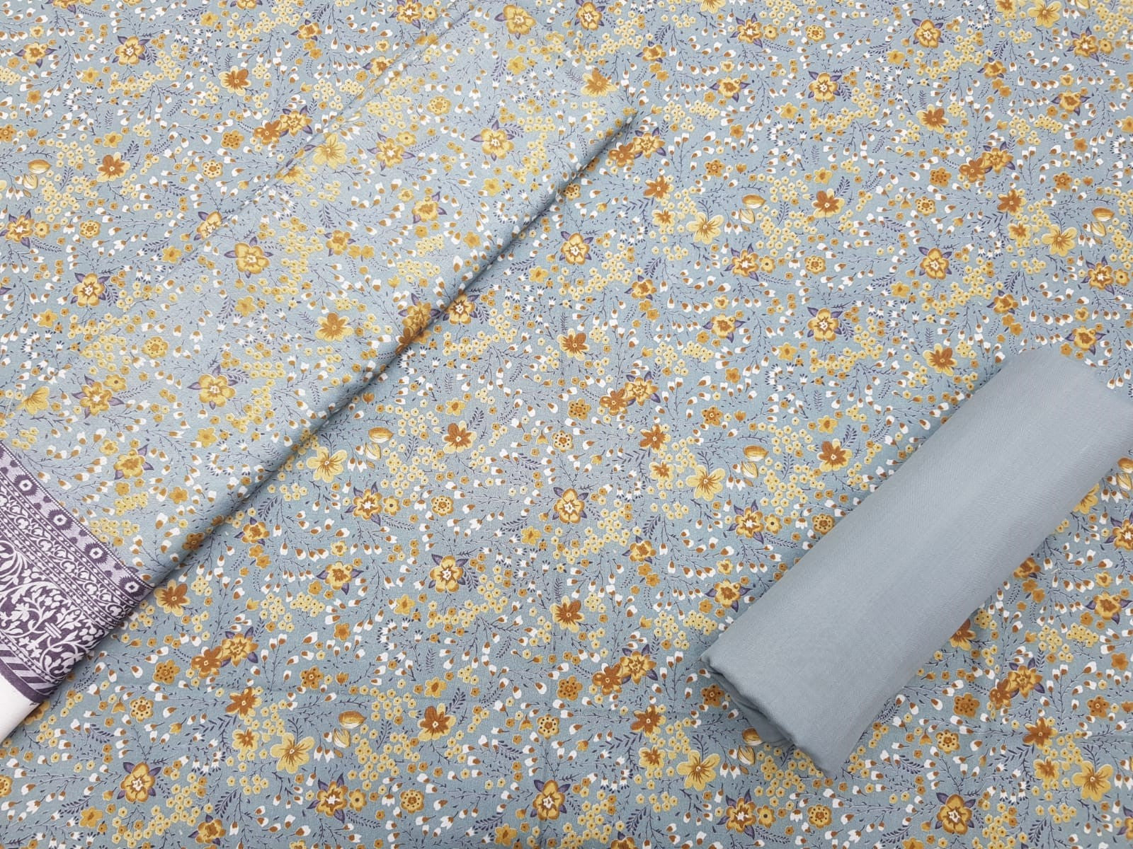 Three Piece Unstitched Suits 3 Meter Printed Shirt 2.25 Meter Printed Duppta 2.25 Meter Plain Trouser