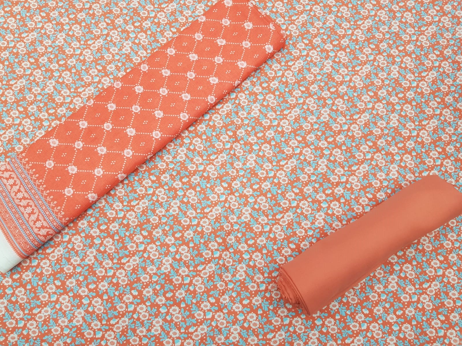 Three Piece Unstitched Suits 3 Meter Printed Shirt 2.25 Meter Printed Duppta 2.25 Meter Plain Trouser