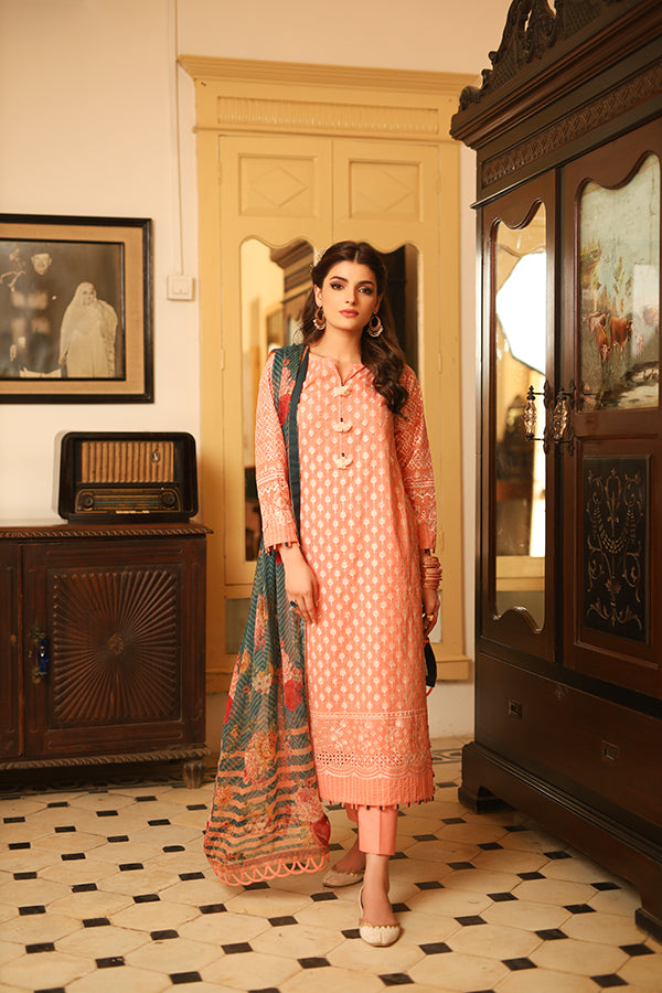 Dupatta: Chiffon Printed 2.5 Meters Shirt Front: Dyed Lawn Emb 1.25 Shirt Back: Dyed Lawn 1.25 Meters...