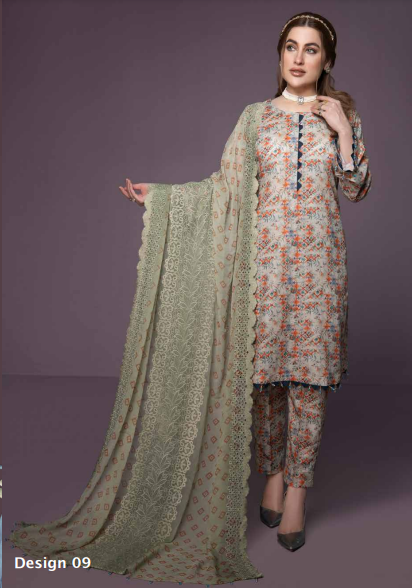 - Unstiched Digital Printed Lawn 5 Mtr Shirt & Trouser- Printed Premium BAMBER CHIFFON DUPPATA with 2...