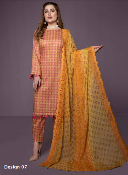 - Unstiched Digital Printed Lawn 5 Mtr Shirt & Trouser- Printed Premium BAMBER CHIFFON DUPPATA with 2...