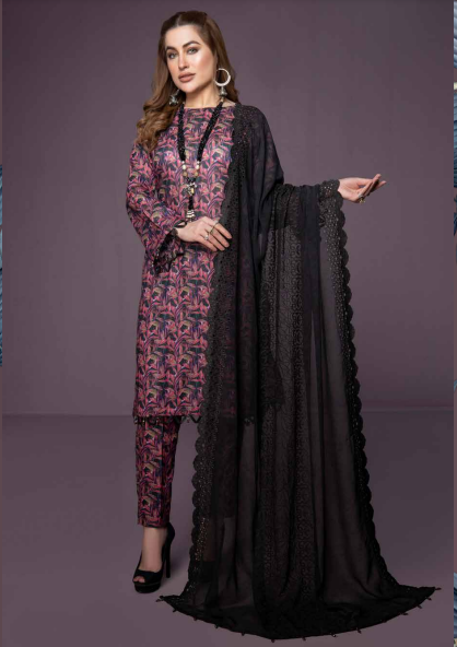- Unstiched Digital Printed Lawn 5 Mtr Shirt & Trouser- Printed Premium BAMBER CHIFFON DUPPATA with 2...