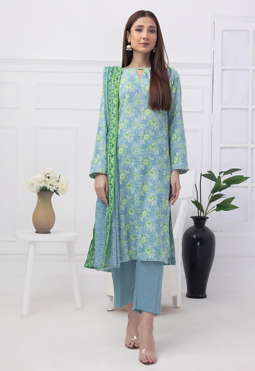 Three Piece Unstitched Suits  3 Meter Printed Shirt 2.25 Meter Printed Duppta 2.5 Meter Plain Trouser
