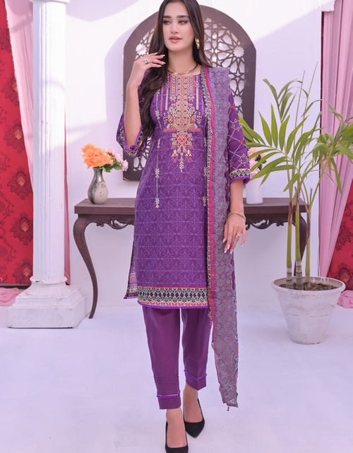 DIGITAL PRINTED STRIPE EMBROIDERED SHIRT. DIGITAL PRINTED BAMBER CHIFFON CHIKANKARI CUTWORK DUPATTA PLAIN DYED TROUSER.