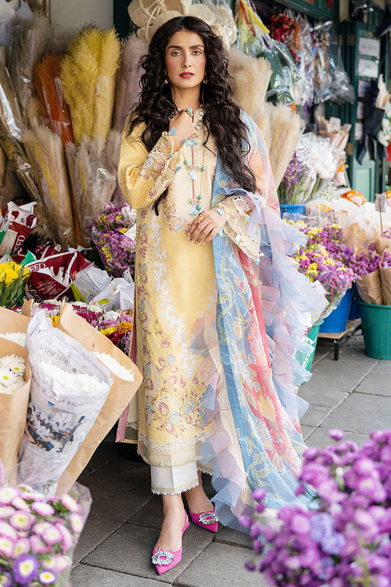 Chikan embroidered and appliqued lawn front Embroidered lawn back Embroidered lawn sleeves Embroidered lawn front neckline Embroidered...