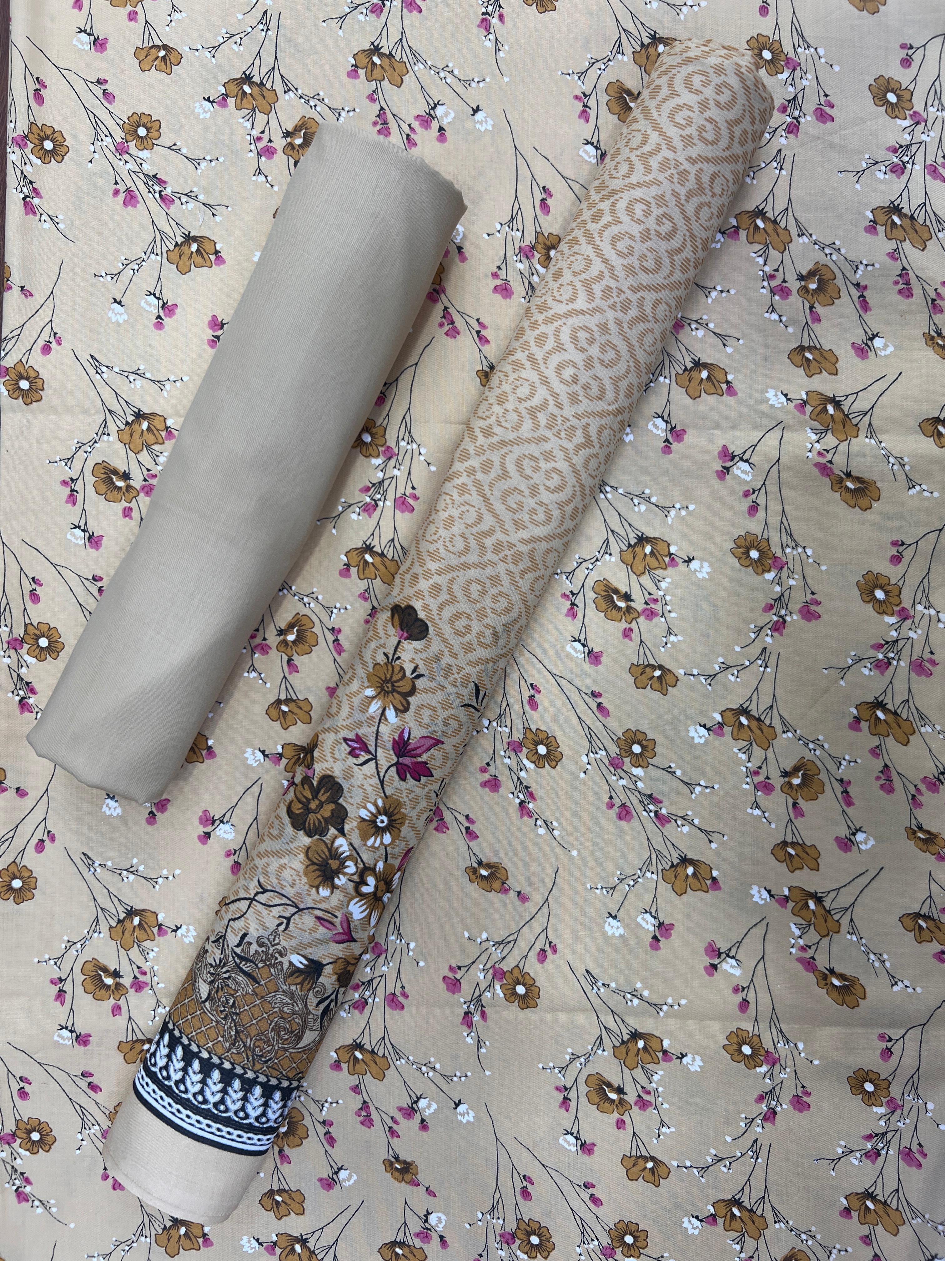 Three Piece Unstitched Suits 3 Meter Printed Shirt 2.25 Meter Printed Duppta 2.25 Meter Plain Trouser
