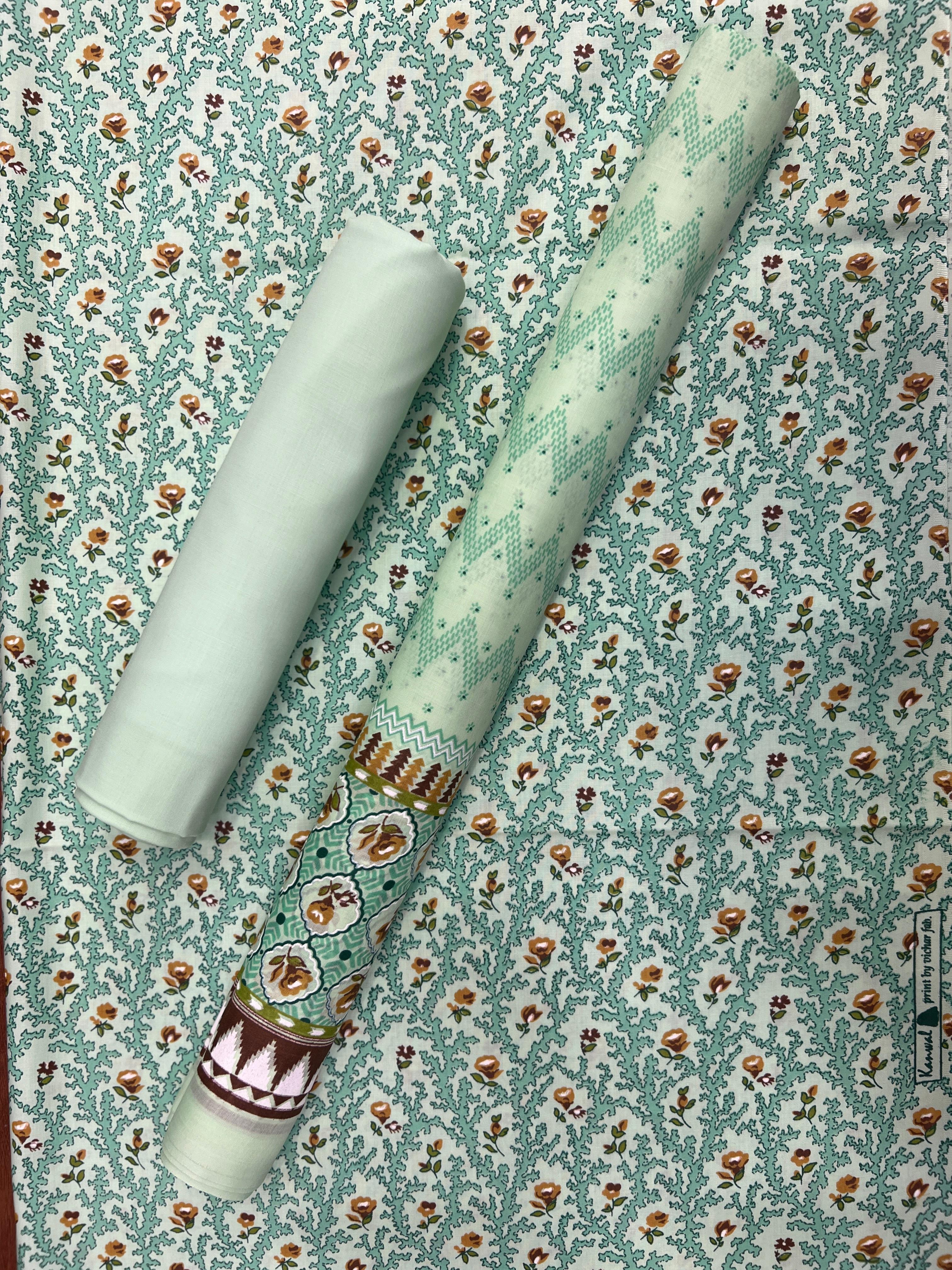 Three Piece Unstitched Suits 3 Meter Printed Shirt 2.25 Meter Printed Duppta 2.25 Meter Plain Trouser