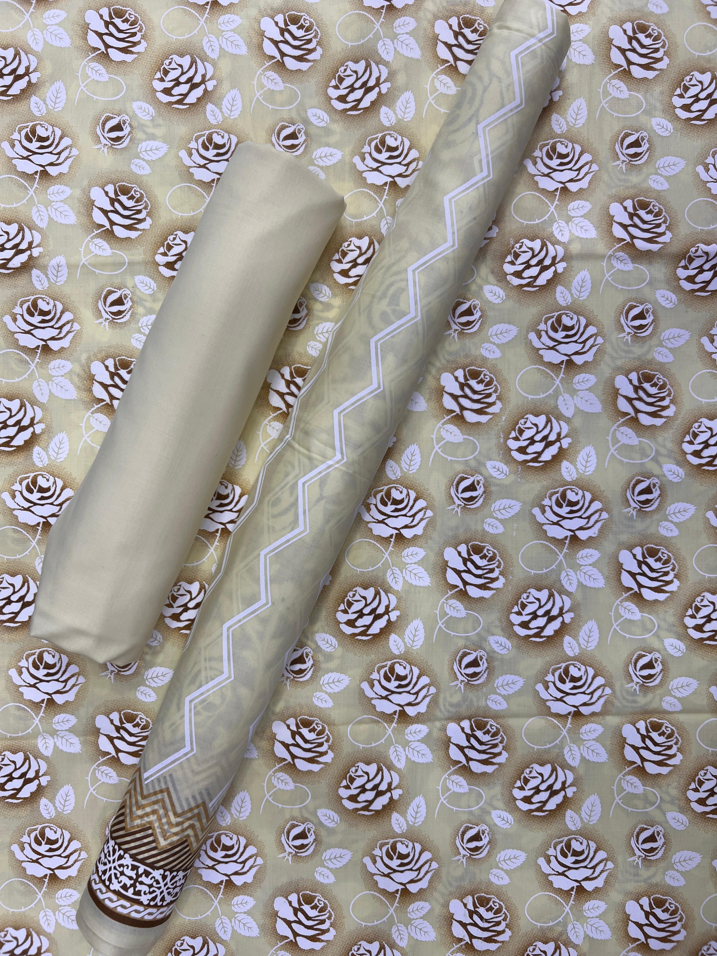Three Piece Unstitched Suits 3 Meter Printed Shirt 2.25 Meter Printed Duppta 2.25 Meter Plain Trouser