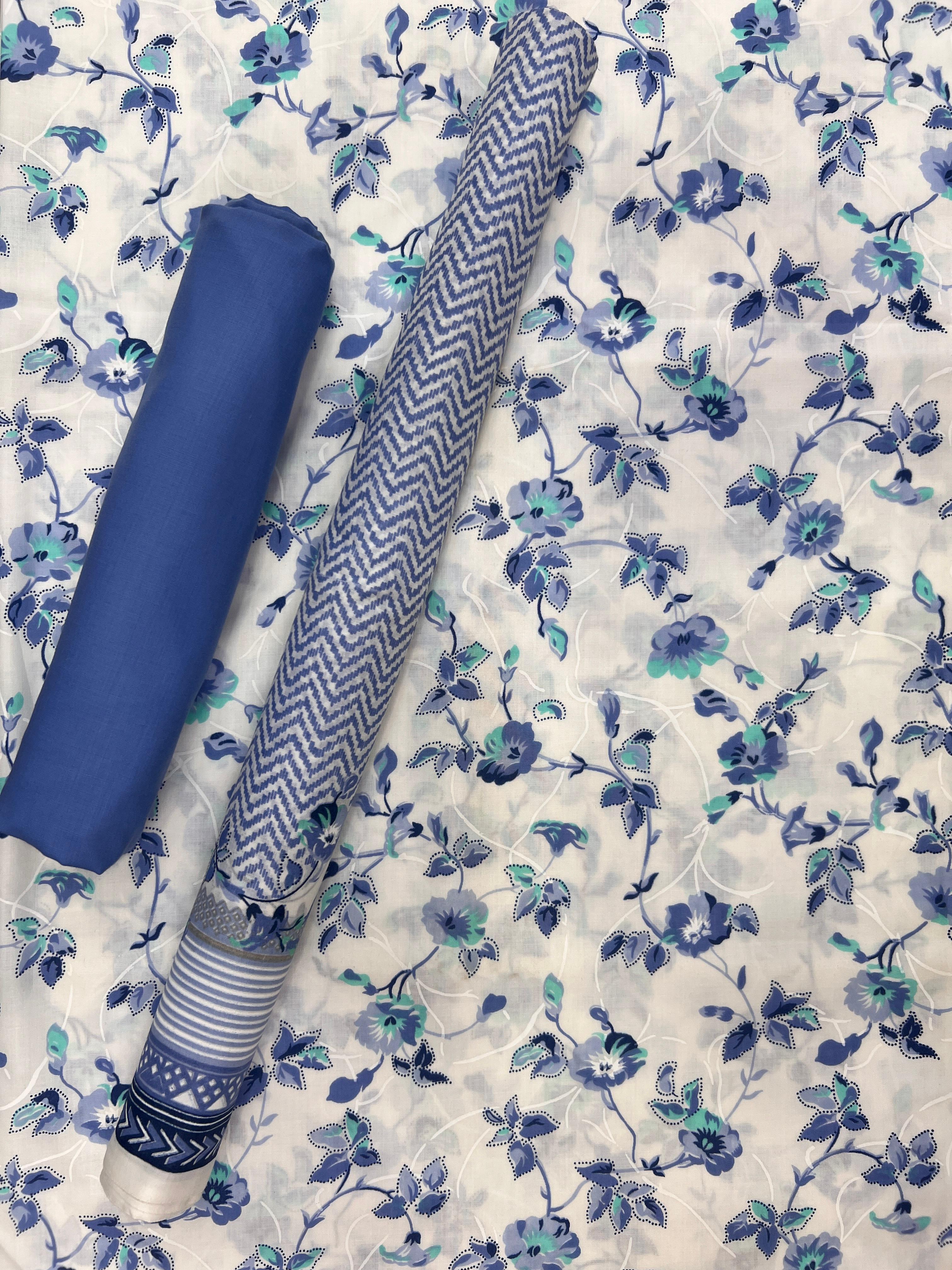 Three Piece Unstitched Suits 3 Meter Printed Shirt 2.25 Meter Printed Duppta 2.25 Meter Plain Trouser