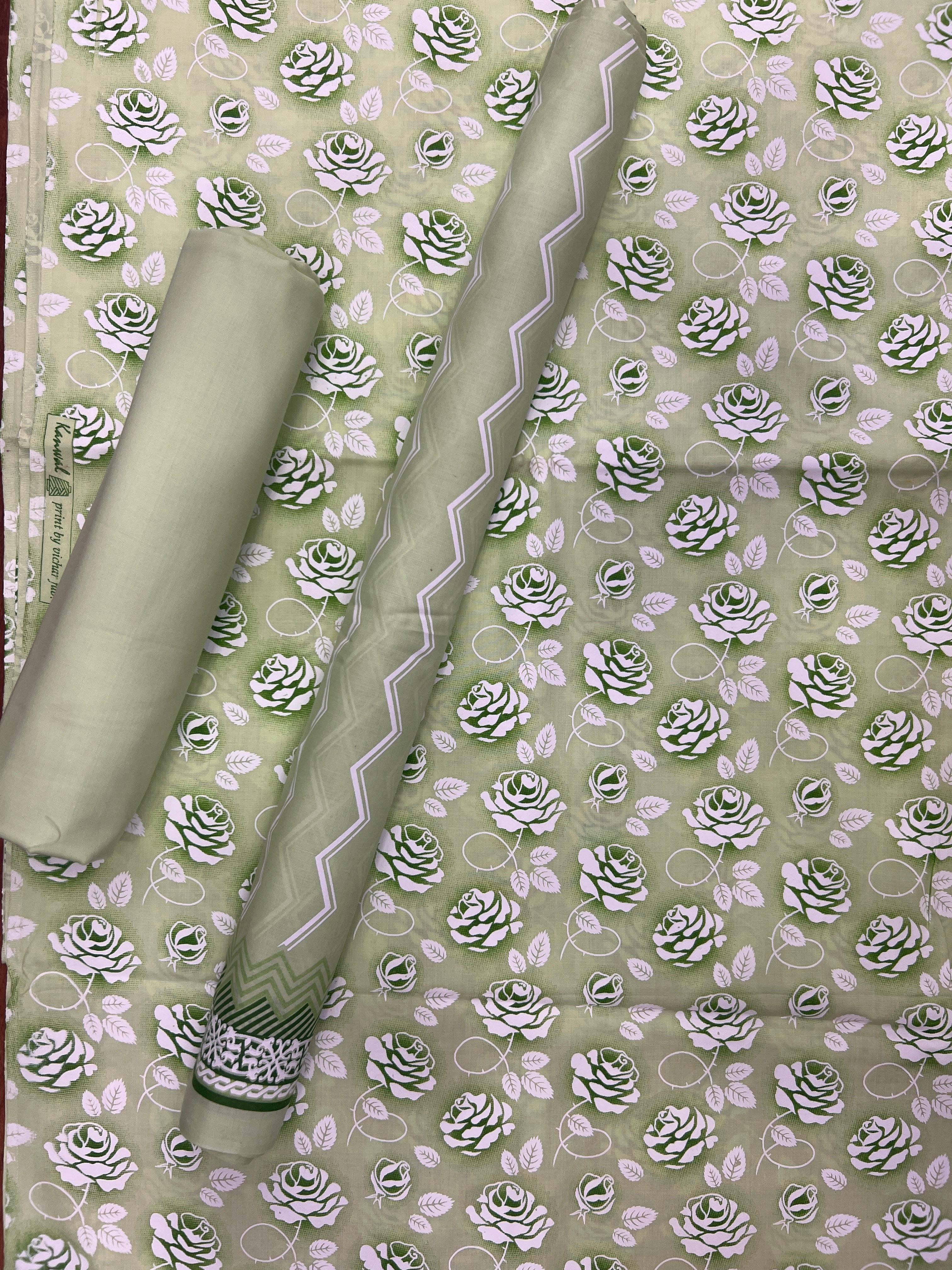 Three Piece Unstitched Suits 3 Meter Printed Shirt 2.25 Meter Printed Duppta 2.25 Meter Plain Trouser