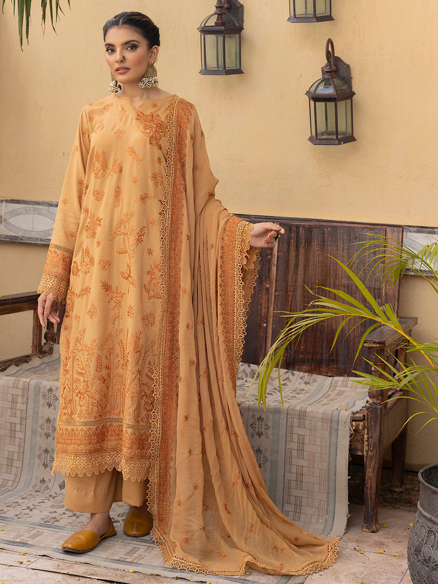 Exclusive Embroidered Karandi shirtLuxury Crinkel Embroidered Chantille DupattaComfort Plane Trouser